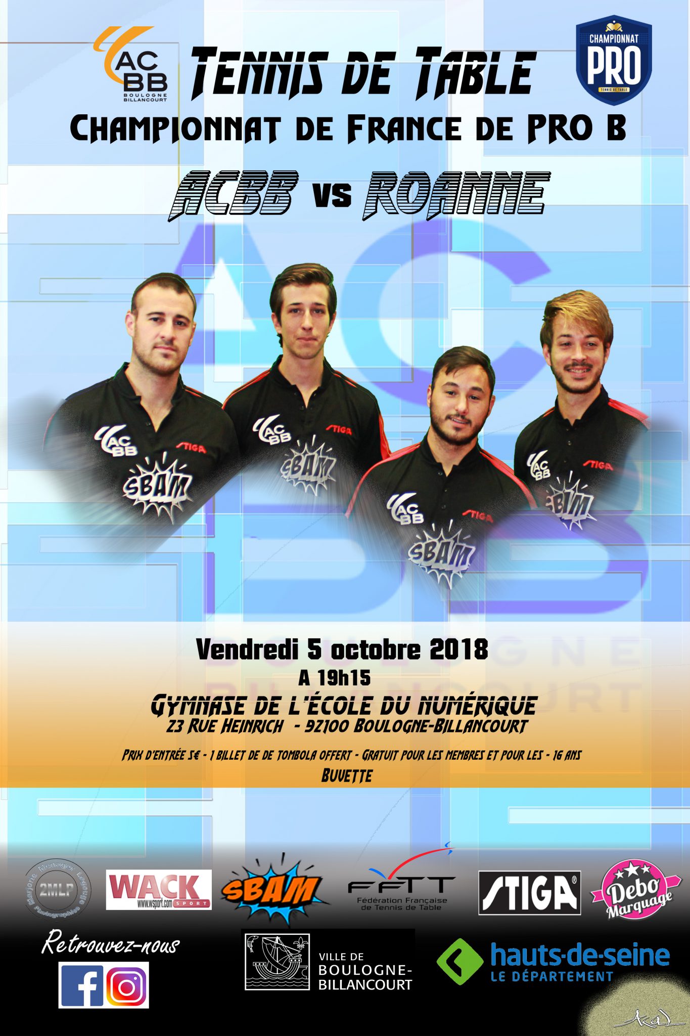 PRO B J2 : ACBB VS ROANNE – Vendredi 5 octobre 2018