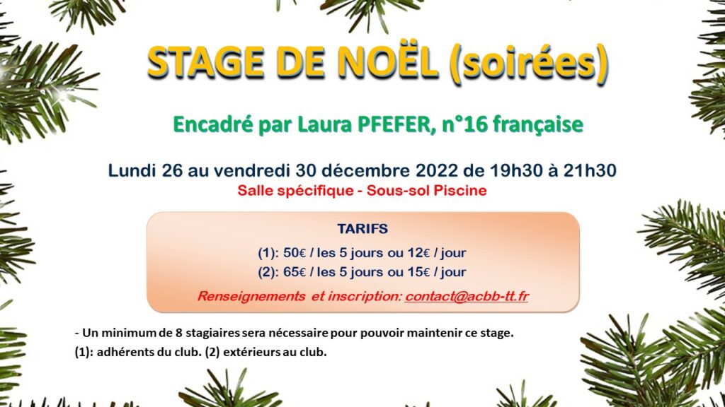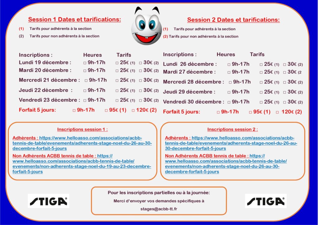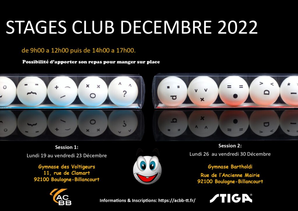 Rendez-vous sur la page dédiée pour les informations concernant les inscriptions et paiement : https://acbb-tt.fr/stages/